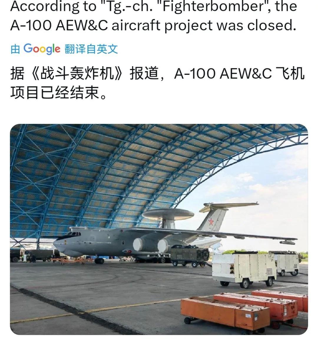 其中俄罗斯的新一代预警机型号是A-100,但因有源相控阵雷达组件依赖进口且受西方制裁,俄罗斯空天军可能已决定放弃A-100项目。虽然截至2026年初,俄罗斯官方未正式确认项目结局,研发工作据称仍在进行但状态不明。