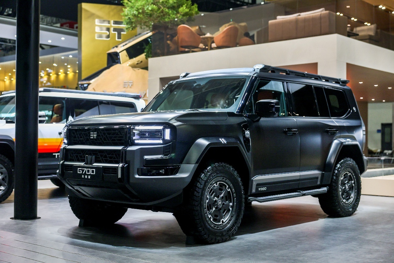 本次车展,G700共创版同步亮相,以深度共创模式彰显品牌与用户的双向奔赴。作为最新的官方改装车型,新车搭载拓野云台底盘、越野AT胎、科曼高性能氮气减震等硬核配置,兼顾个性化与实用性。