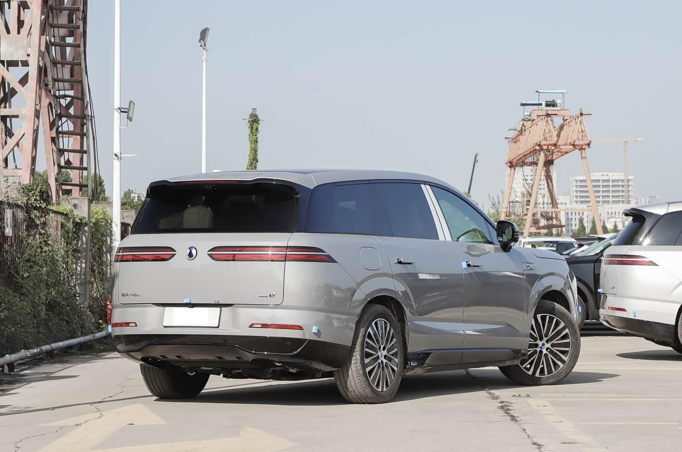 再来看车尾部分,车尾设计延续整体科技调性,贯穿式尾灯采用立体光带结构,夜间点亮时与车头灯组形成呼应,辨识度十足。顶部的扰流板与下压式尾翼优化空气动力学表现,配合底部扩散器造型,让高速行驶更稳定。后包围采用双色拼接设计,隐藏式排气布局保持简约风格,银色护板则强化越野气息。大尺寸后窗搭配电动尾门,不仅提升实用性,更让车尾视觉上更显宽绰,完美平衡运动感与家用属性。
